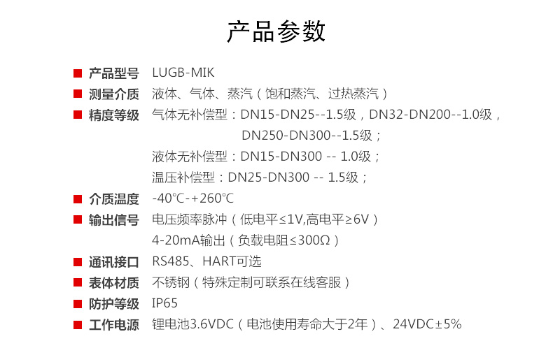 LUGB-MIK涡街流量计 法兰夹持式 蒸汽/压缩空气/氮气