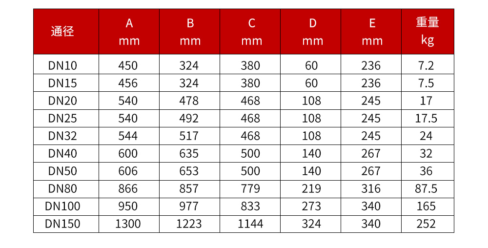 直管型:DN8~DN80 U 型:DN20~DN150 三角型:DN3~DN15