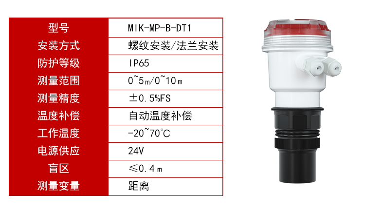 MIK-ZPM小量程超声波液位计利用发射超声波经物位或液位,反射后所需要的时间来计算距离。