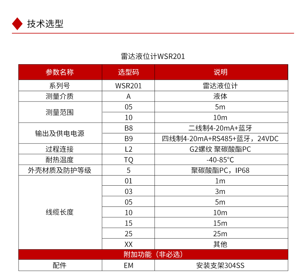 WSR201雷达液位计是利用高频微波雷达技术实现对水文信息的实时监测和精准测量。相较于传统的水文监测方法,雷达技术具有测量精度高、实时性强、适用范围广等优势。本产品波束能量低,对人体及环境均无伤害,还具有不受介质比重的影响、不受介电常数变化的影响、不需要现场校调等优点,广泛应用江河、水库、湖泊、灌渠、河道等自然水域水文监测场合。